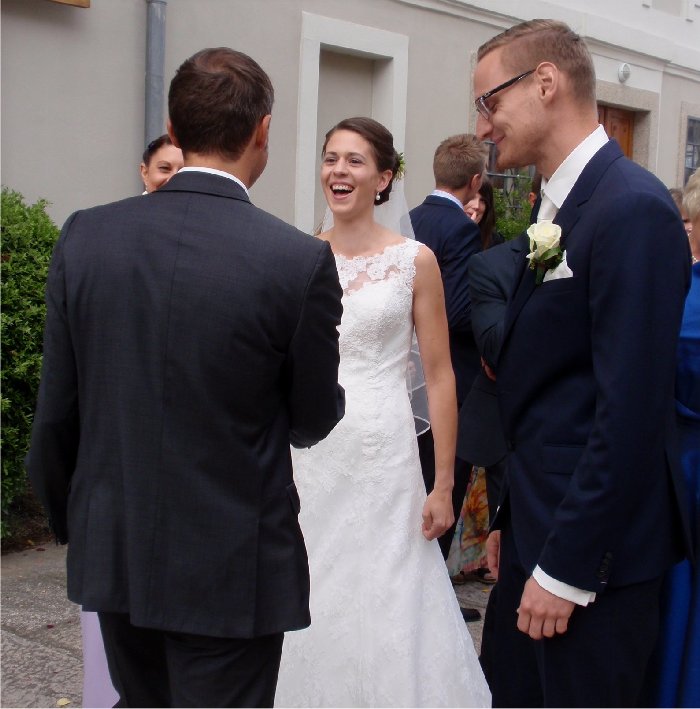 "Bitte warten" hieß es kurzzeitig für Julia. Als nämlich die Hochzeitsgesellschaft sich bereits in der Kirche befand, wurde die Eingangstüre von Mesnerhand verschlossen und Julias Hochzeit drohte zu scheitern. Doch nach kurzfristiger und intensiver Intervention konnte die Zeremonie erfolgreich fortgesetzt werden. |
