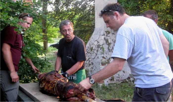 Die "wilde" Freitagsau" wurde von den Profi-Zerlegern problemlos tranchiert und an die hungrigen Mäuler verteilt. |