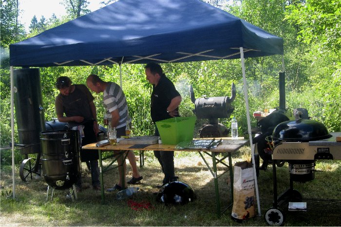 Nobody does in better - Profigriller rund um Christian Strasser bescherten den UBBClern am Samstag ein tolles Menue - Smookerfleisch gab es in allen Variationen. |
